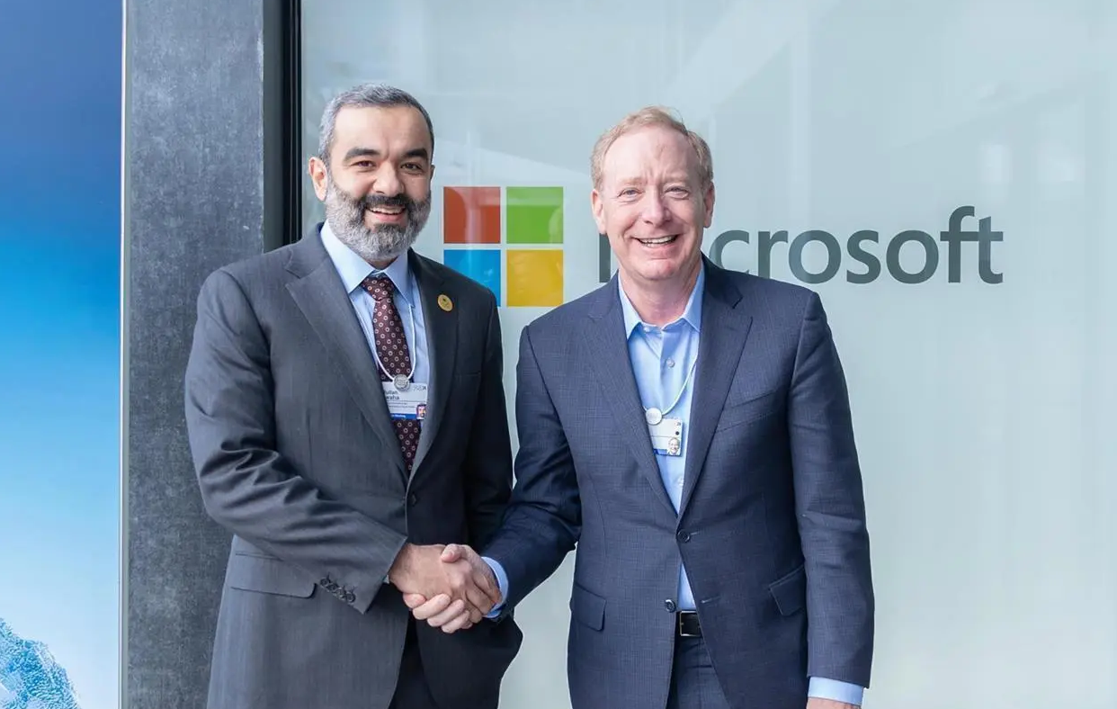 Alswaha met with Microsoft Vice Chair and President Brad Smith to discuss advancing strategic partnerships in AI and cloud computing and enabling a technology- and AI-driven economy.