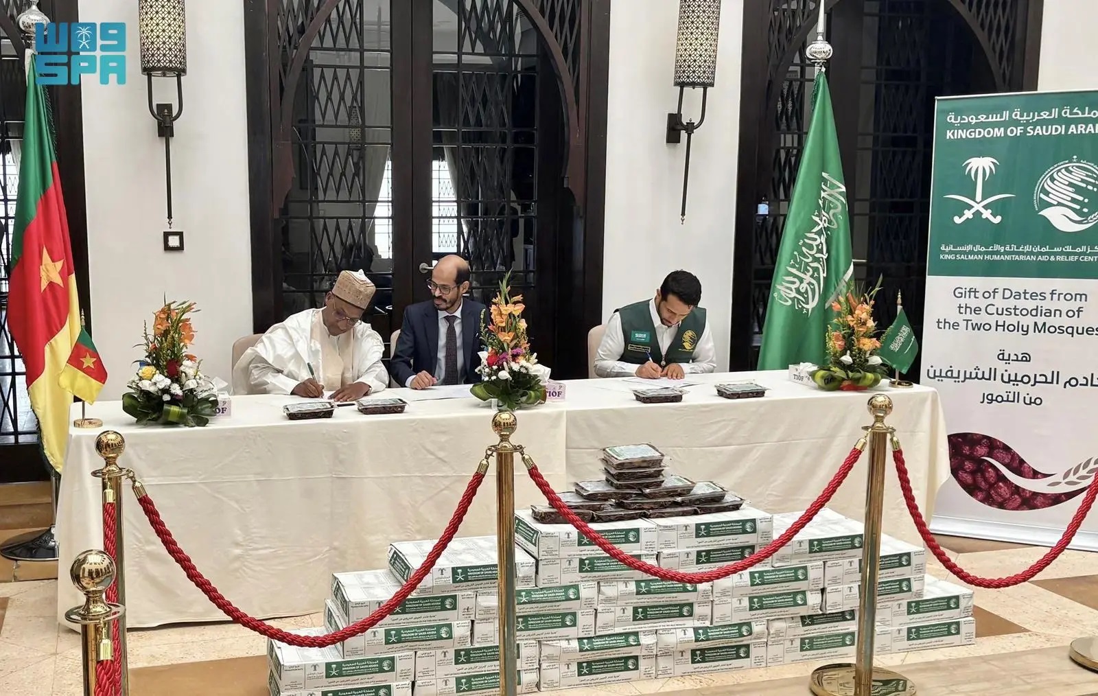 King Salman Humanitarian Aid and Relief Center (KSrelief) delivered the Kingdom of Saudi Arabia's gift to the Republic of Cameroon, amounting to 25 tons of dates.
