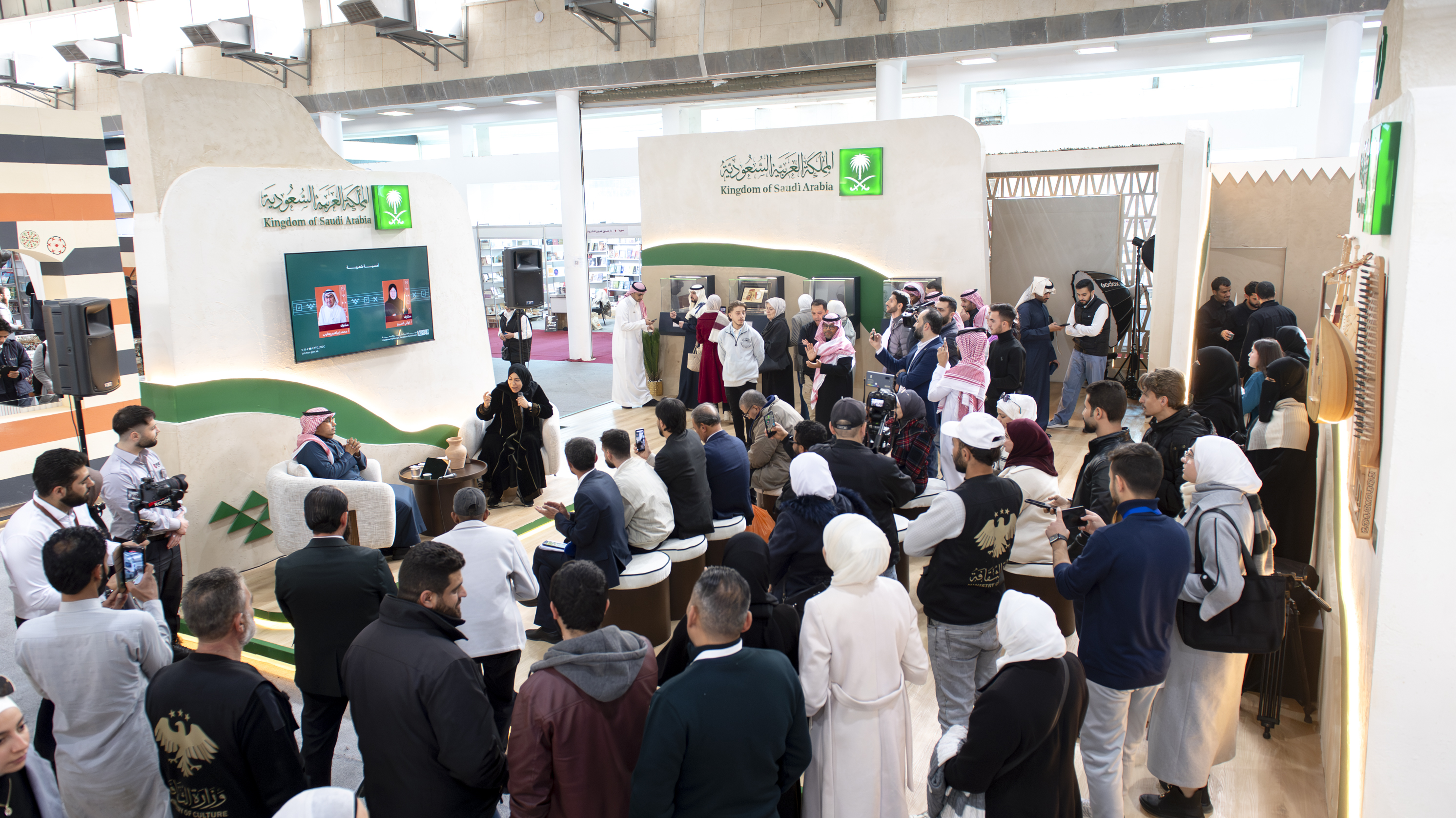 The pavilion highlighted the diversity of Saudi literary and artistic expression by featuring a manuscript exhibition, displays of traditional attire, a hospitality area, archaeological replicas, and live performances that reflected the depth of the Kingdom’s cultural heritage.